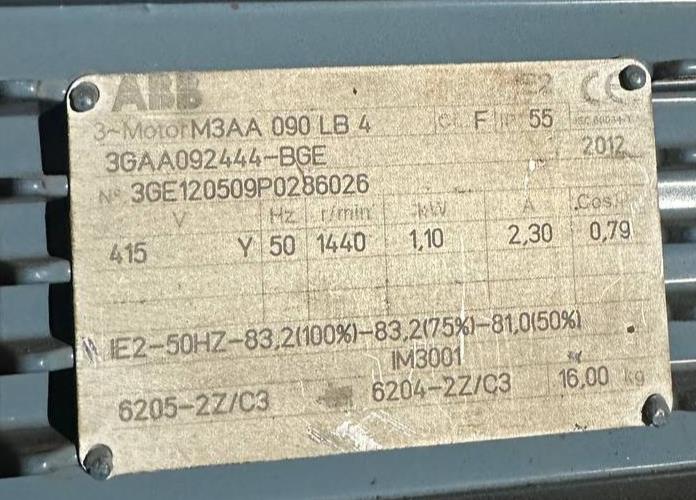 ABB 3GAA092444-BGE MOTOR 1.10 KW 1440rpm 230/415v used 3 Month warranty