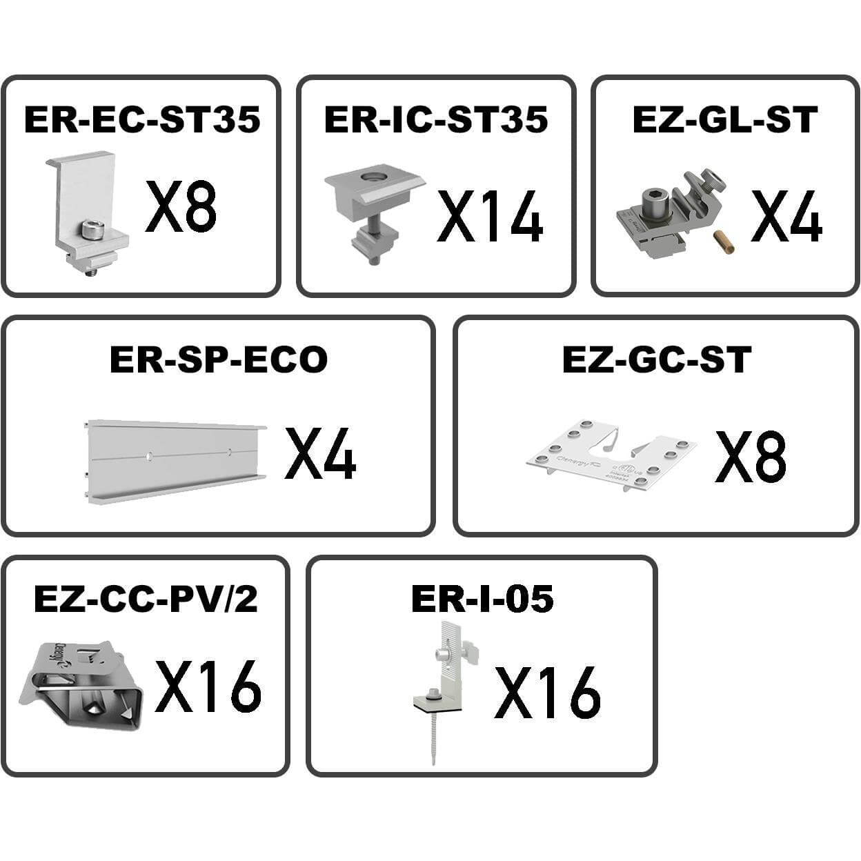 Clenergy kit for solar roof tin 8 panels tin kit with 35mm clamps K-SR-ECO 35