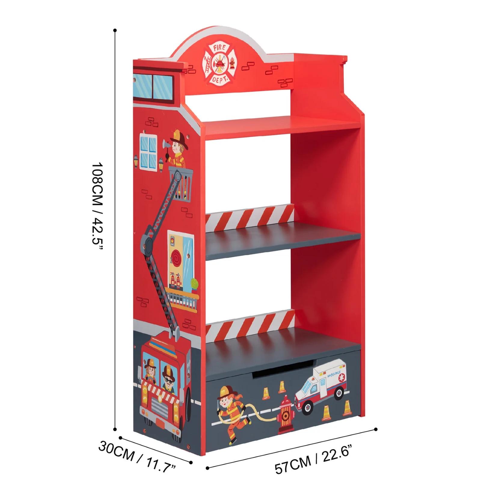 kids 3-Tier Bookshelf with Drawer Fantasy Fields Little Fire Fighters Safe