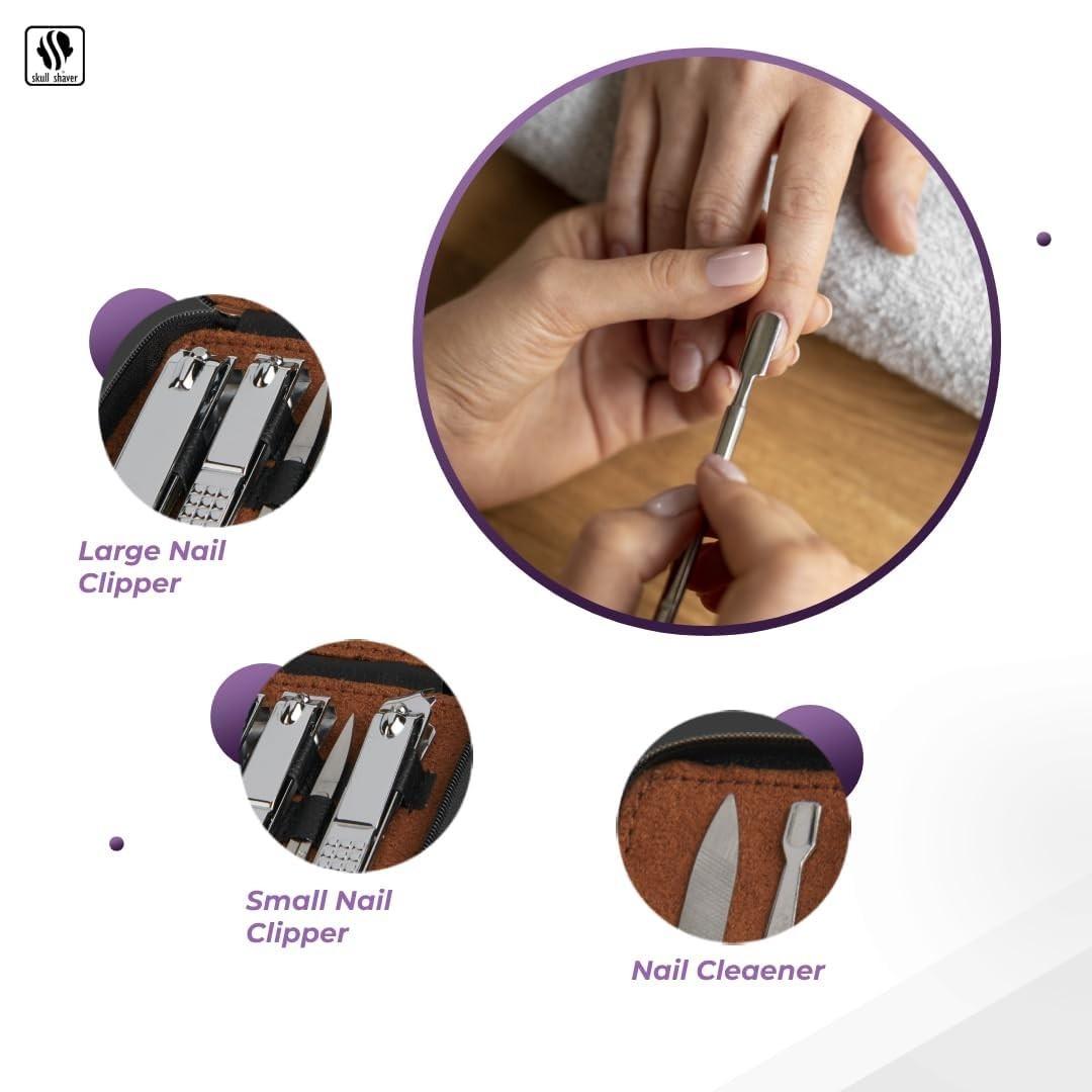 Skull Shaver 8-Piece Manicure Set for Men Nail Kit Grooming Tools
